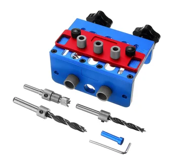 3 in 1 Woodworking Drill Guide Set Hole Puncher Dowelling Jig Self Tighen Clamp Dowel Tenon Punching