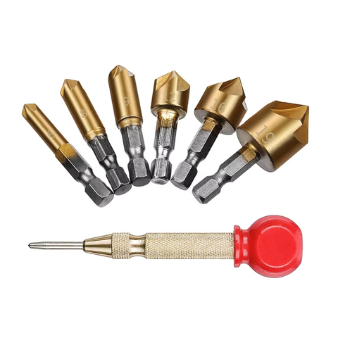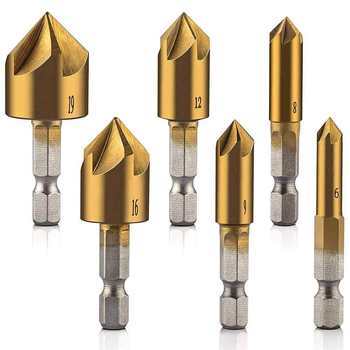 סט 5pcs סט משטח סט 1/4 "shank משושה 90 מעלות hss countersink samfer 5 חלילים מקדחים